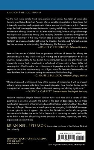 Qoheleth S Hope The Message Of Ecclesiastes In A Broken World Peterson Brian Neil 9781978703995 Amazon Com Books
