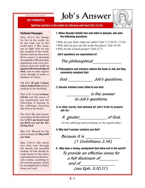 Spiritual Warfare Syllabus Section B Timothy Ministries