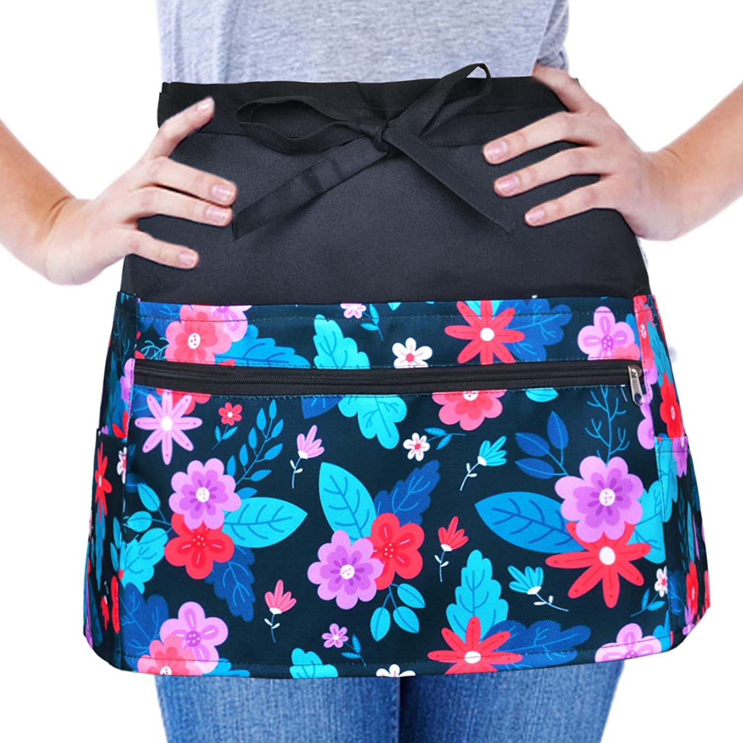 Half Apron With Pockets For Women Server Aprons For Waitress Cute Kitchen Resturant 6 Pockets Half Waist Aprons Water Oil Stain Resistant Walmart Com